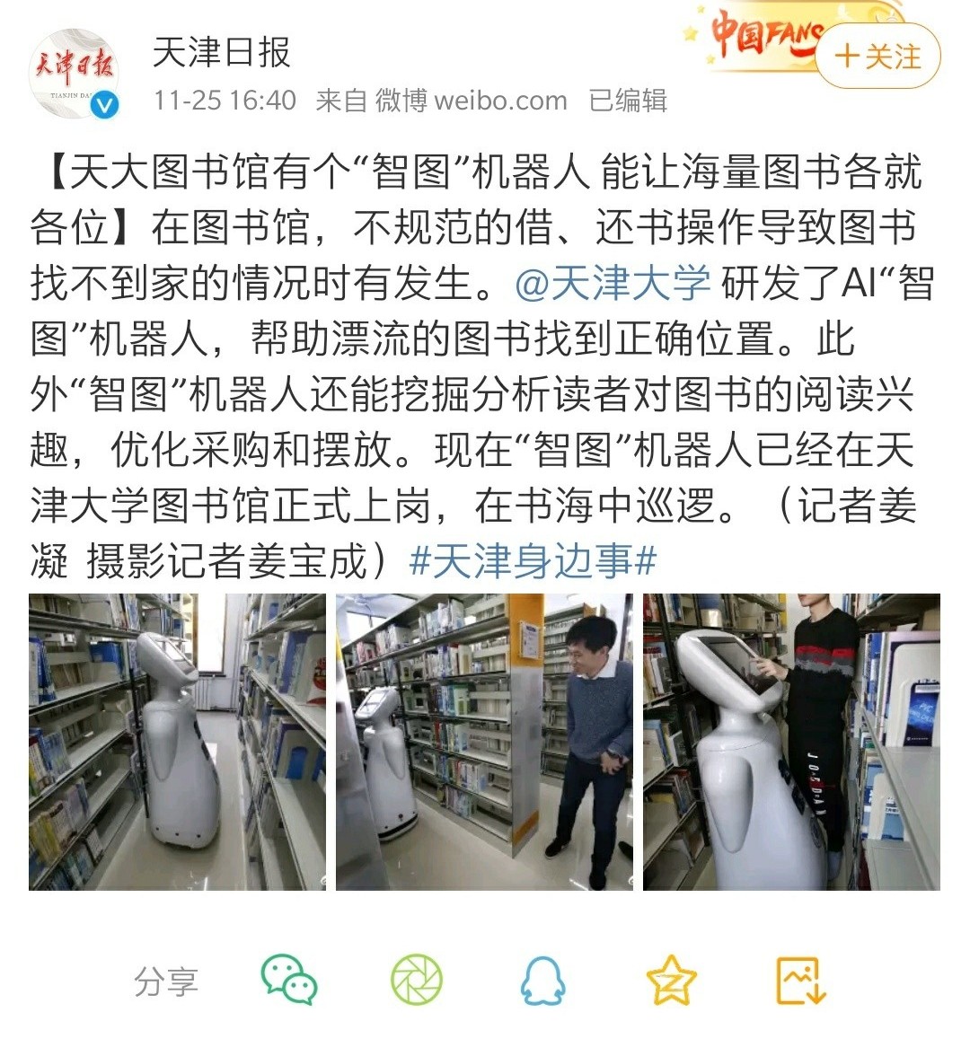 免费成人影片 研发了AI“智图”机器人,帮助漂流的图书找到正确位置。此外“智图”机器人还能挖掘分析读者对图书的阅读兴趣,优化采购和摆放。