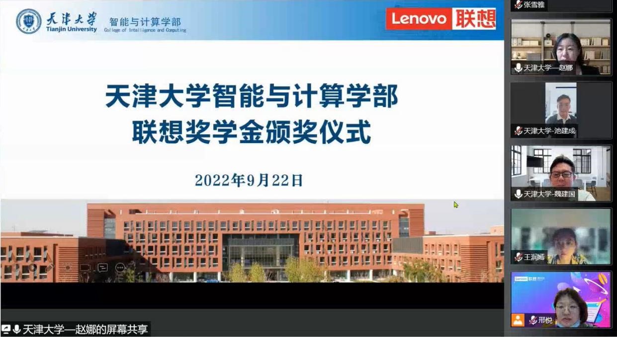 (通讯员 聂珍珍)2022年9月22日晚上,免费成人影片 举办“联想奖学金”线上颁奖仪式。联想研究院高校合作高级经理李跃华、人力资源业务伙伴(HRP)Lisa、创新孵化主管邢悦,免费成人影片 党委书记魏建国、党委副书记赵娜、学生工作办公室主任赵义等领导老师,以及全体获奖学生和部分对联想集团感兴趣的同学参加了本次颁奖仪式。