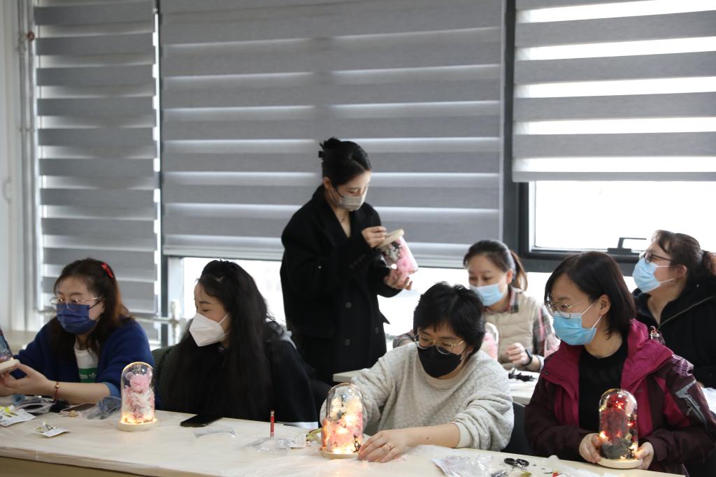 学部教师一边交流,一边制作,在其乐融融的气氛中,或合作、或独自地完成精致的永生花作品。大家纷纷拍照留念,在微信朋友圈分享自己作品和愉悦的心情,度过了一个有意义的节日。