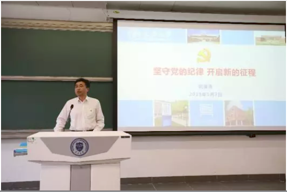 党委书记花建锋为师生党员上了一场题为《坚守党的纪律 开启新的征程》主题党课,带领大家详细解读《中国共产党纪律处分条例》、中央八项规定实施细则以及教育部《严禁教师违反师德师风行为的规定》等文件精神,并结合相关案例,深入浅出地剖析了不可触碰的高压线和明令禁止的教师行为,要求大家进一步加强党性修养,严守党的纪律,严格要求自己,永葆共产党员的本色。