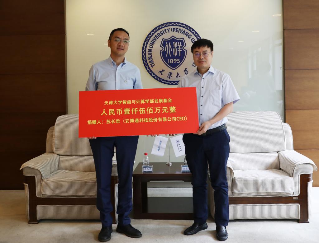 金东寒对苏长君一行回访母校表示欢迎,对捐赠支持智算学部发展表示感谢。他指出,校友是学校事业发展宝贵资源,学校的发展离不开校友的支持与帮助,校友的捐赠寄托了对母校的深情厚谊。学校正积极围绕“两个聚焦”科技工作方针,依托新工科建设实际,面向企业工程难题,积极推动产教融合,发挥学校智力资源解决企业发展瓶颈,切实把论文写在祖国大地上,希望双方能在共建联合实验室的基础上,进一步深化双方合作,发挥各自优势,搭建高水平人才培养平台,为国家的网络安全事业贡献出“天大力量”。